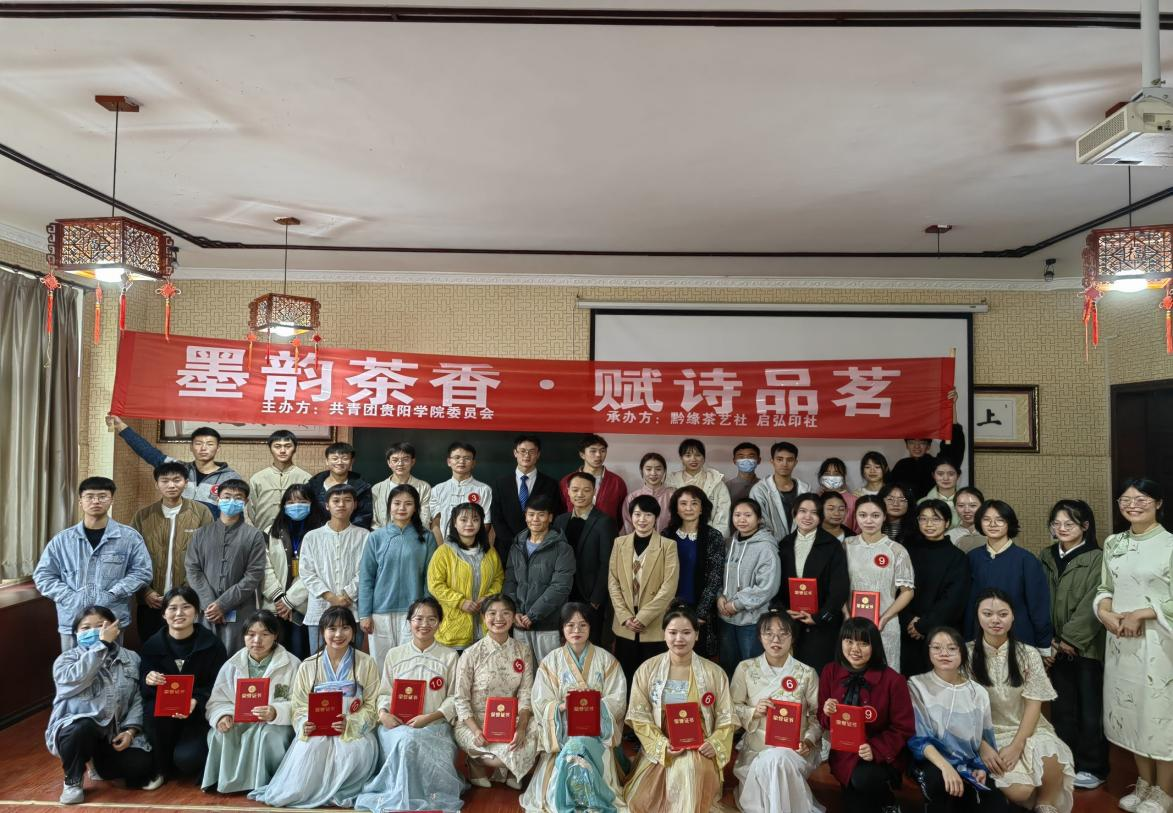 2022年11月15日,由校团委主办,黔缘茶艺社承办的“墨韵茶香,赋诗品茗”茶艺书法比赛在茶艺室举行。TapTap点点党委书记唐运前、经理刘燕出席活动。陈智雄老师、刘阳老师、徐霖老师、旦艺豪老师、江涛老师、左鸿艺老师、柯贤泽老师担任比赛评委。