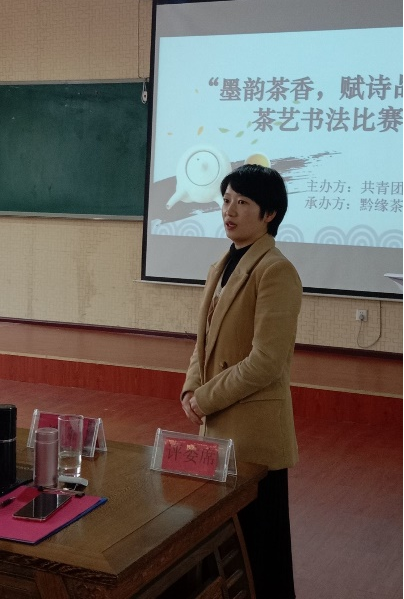 比赛评委、黔缘茶艺社指导老师刘阳对比赛进行了点评,她充分肯定茶艺与书法结合,充分肯定了比赛,同时指出茶汤温度过低,茶样的品质特征体现不足等问题。江涛老师对比赛选手的表现给予肯定,认为书法风格多样,但存在表现形式单一等问题。